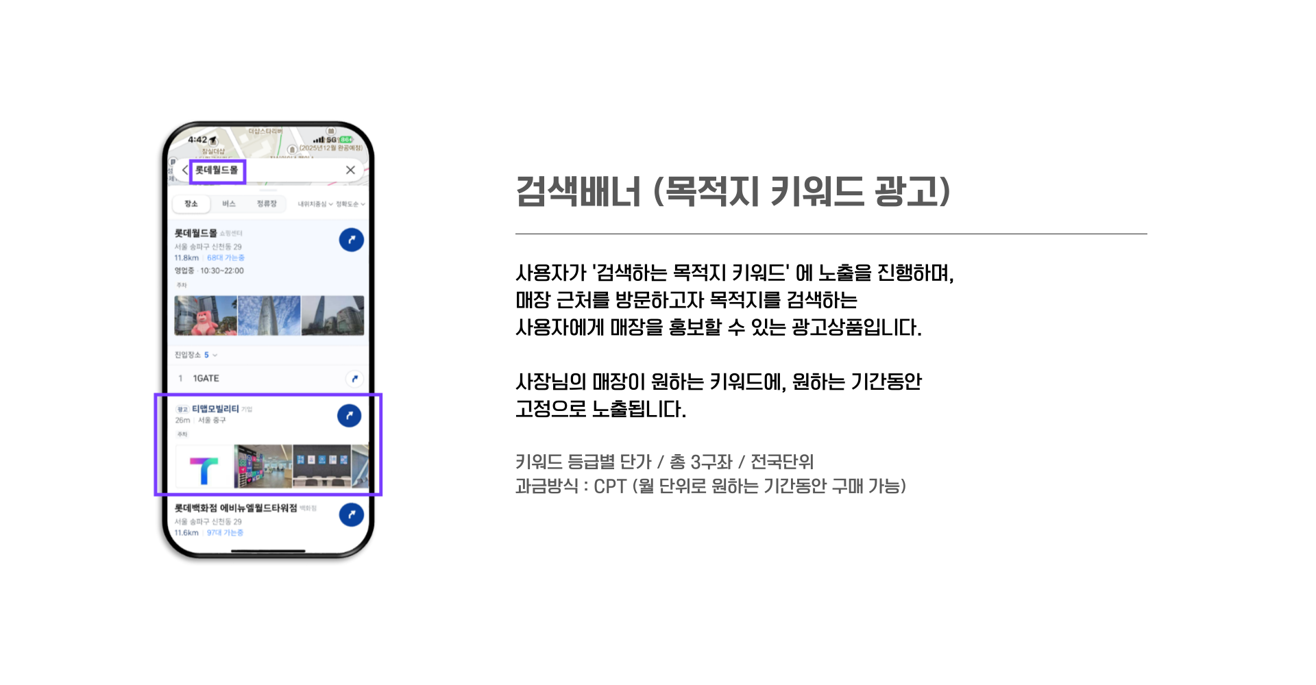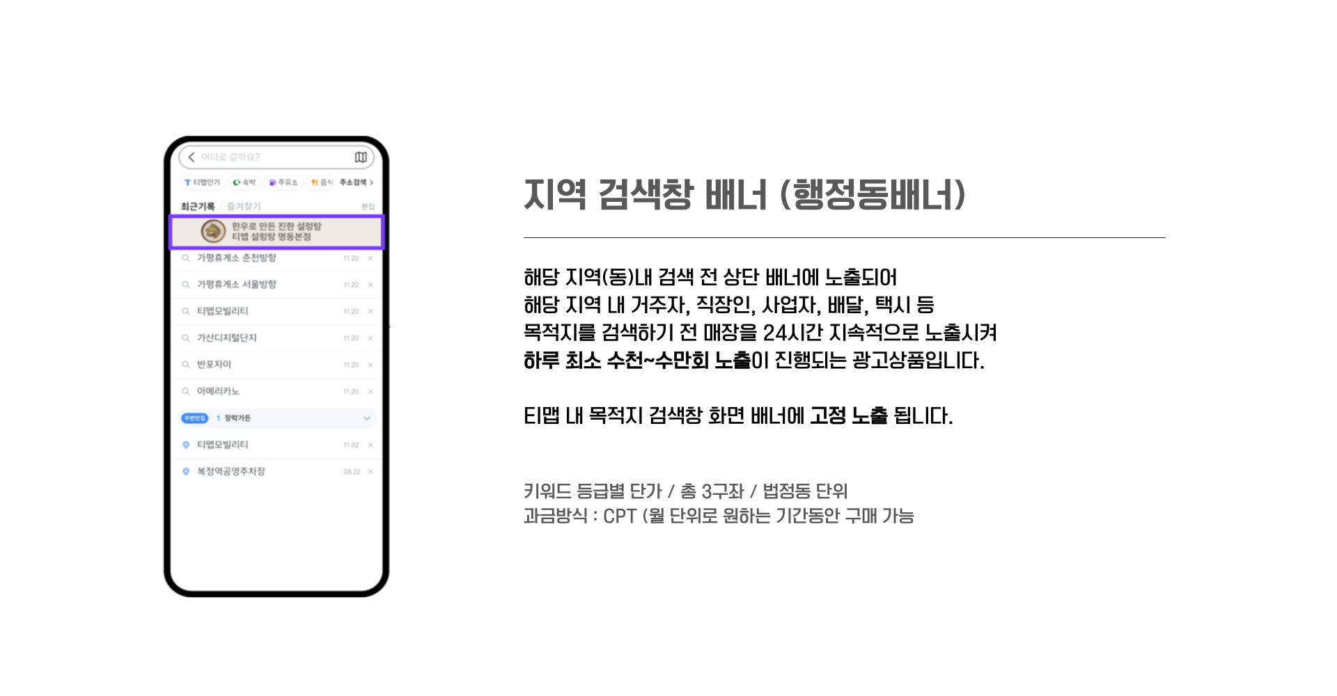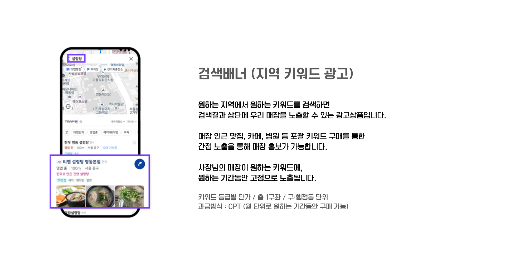 나의 가게 주변을 검색하여 방문 예정인 사용자 또는 현재 나의 가게 주변에 위치한 사용자에게 매장을 홍보할 수 있는 광고상품입니다.
